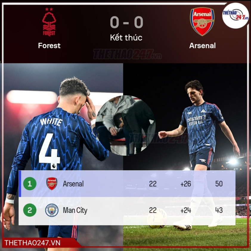 Trận hòa 0-0 với Nottingham Forest giúp Arsenal nâng khoảng cách với Man City lên 7 điểm. Nhưng thực chất là họ đã đánh mất cơ hội gia tăng khoảng cách lên 9 điểm. Rất may cho họ là các đối thủ đều có vấn đề. Nhưng nên nhớ vẫn còn 16 vòng phía trước.