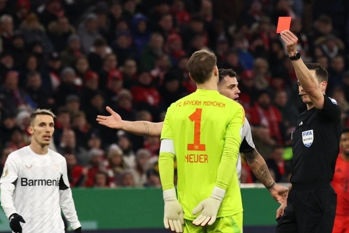 Thủ môn kỳ cựu Manuel Neuer đã nhận thẻ đỏ đầu tiên trong sự nghiệp 866 trận, đánh dấu một khoảnh khắc bước ngoặt trong trận thua của Bayern Munich trước Bayer Leverkusen tại Cúp Quốc gia Đức.